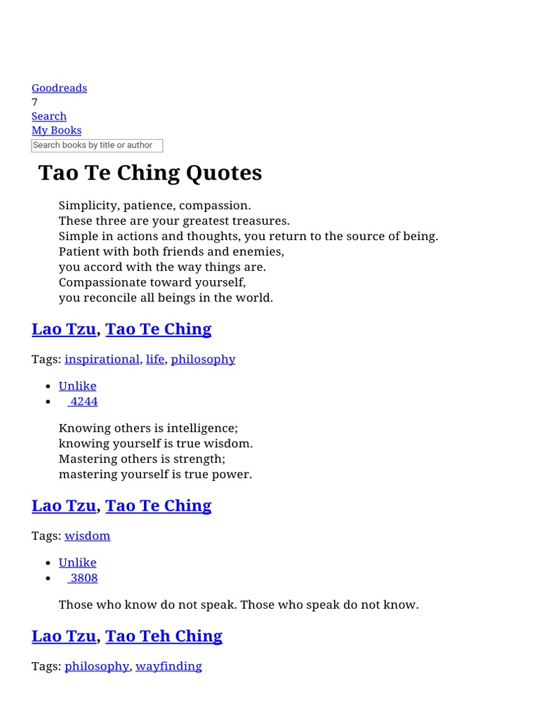 The Tao Te Chings powerful message to â 47 out of 5 stars 771 1 Best Seller. The Tao Te Ching provides the basis for the philosophical school of Taoism which is an important pillar of Chinese thought. The Tao of Daily Life.